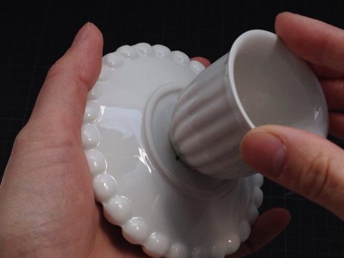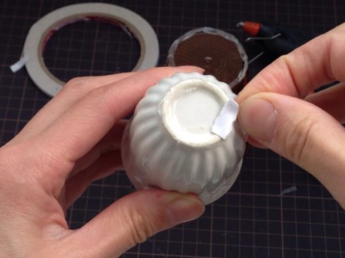 ②お皿の裏の中心にギュッと貼り付けて完成です!