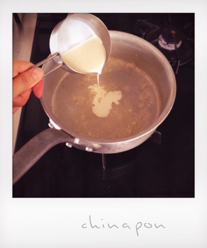 ④鍋に油、ニンニクを入れ香りが出るまで炒める。